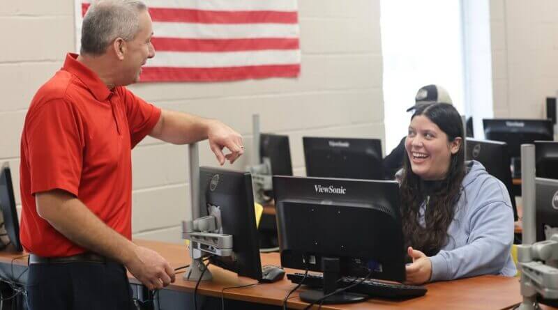 RiLee Morrow learned she was accepted into the School of Architecture at Mississippi State University in a moment captured in a photo with her instructor, Jeff Melson. The scene took place as they discussed her acceptance.
