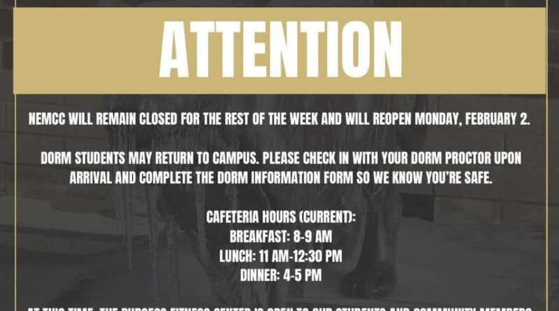 NEMCC to Reopen Feb. 2 After Weeklong Closure