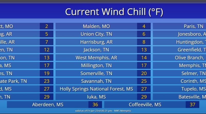 Arctic air brings cold wind chills to Mid-South, with some areas in single digits