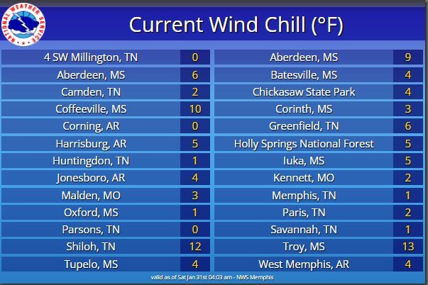 Chilly wind chills grip area early Thursday morning