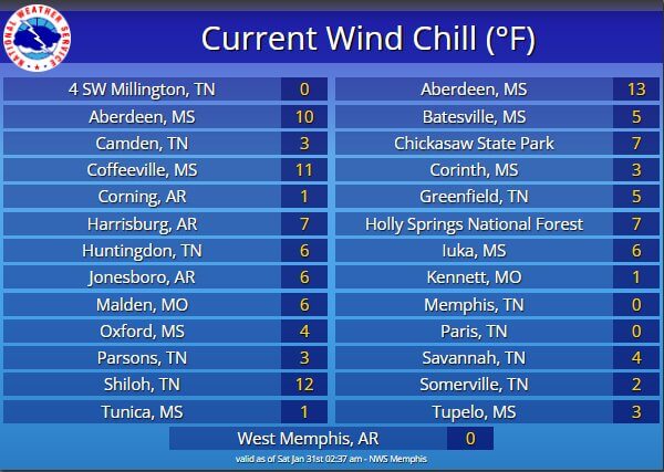 Chilly wind chills hit early morning temperatures