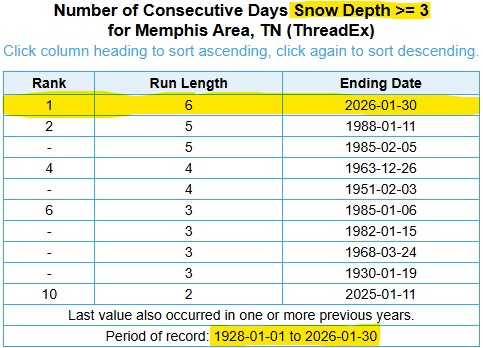 Memphis Sets New Record for Consecutive Days with 3 Inches of Snow on Ground