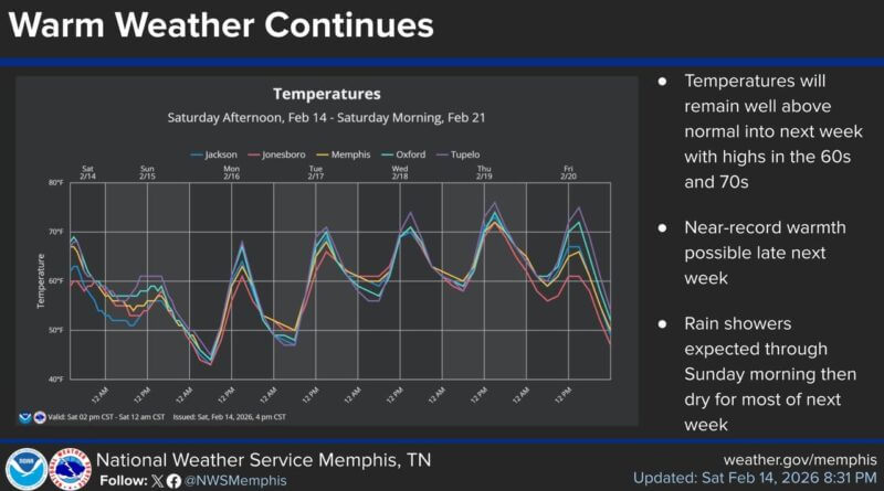 After a weekend of rain, temperatures are forecast to increase across the Mid-South area. Highs will be in the 60s on Monday, according to weather reports.