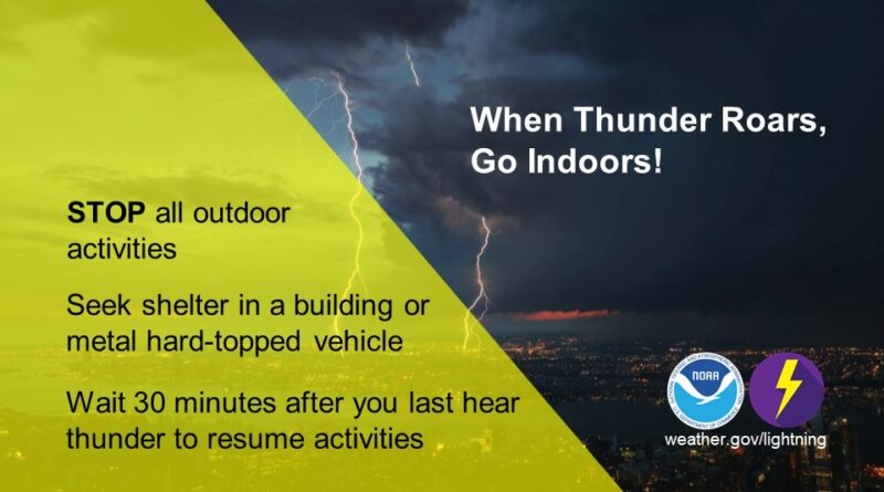 One important rule is to remember that when thunder roars, everyone should go indoors. Officials advise avoiding outdoor activities when thunderstorms are nearby.