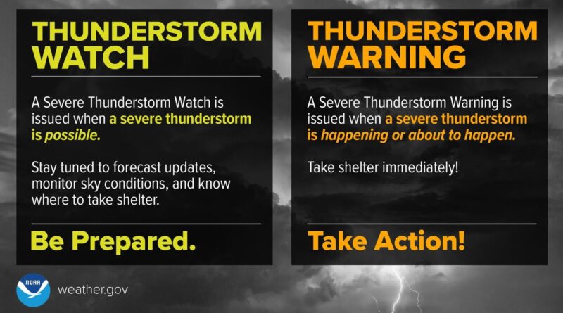 Residents are advised to stay alert and monitor local weather updates. A severe thunderstorm watch means people should be prepared, while a warning indicates that severe weather is imminent or occurring, and safety measures should be taken.