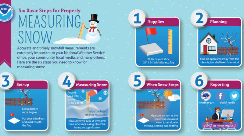 Officials encourage the public to report snowfall in tenths of an inch, such as 2.1 inches or 3.4 inches, to help with weather tracking.