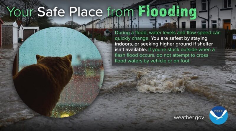 They recommend staying indoors or finding higher ground if shelter is unavailable. The agency also advises never to cross floodwaters by vehicle or on foot, citing the dangers of swift-moving water.