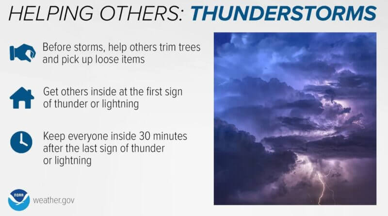 They advised residents to secure loose outdoor items and to move indoors once thunderstorms begin. People should remain inside for at least 30 minutes after the storm passes, according to the weather service.