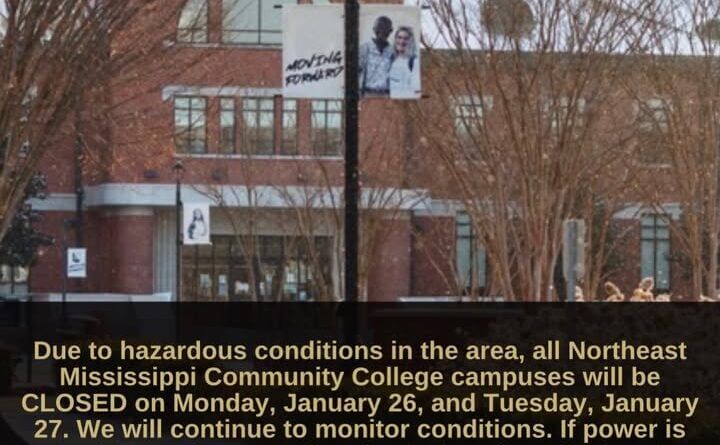 All campuses of Northeast Mississippi Community College will be closed on Monday, Jan. 26, and Tuesday, Jan. 27, due to hazardous conditions in the area, the college announced.