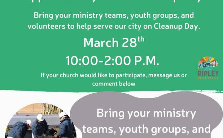 Ripley Main Street asked groups that want to help to message the organization with a head count so volunteers can be matched with locations, the post said. Those who prefer to show up without signing up should meet at the Main Street office at 10 a.m., the post said.