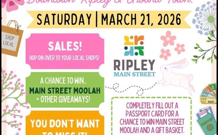 The event will feature special sales, “fun surprises” and chances to win Main Street Moolah and other giveaways, Ripley Main Street said.