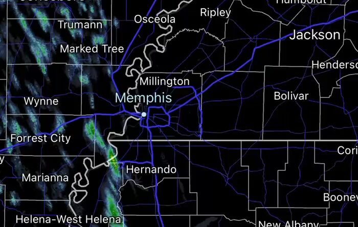Snow Flurries Moving Through Eastern Arkansas, Southwest Tennessee, and Northwest Mississippi