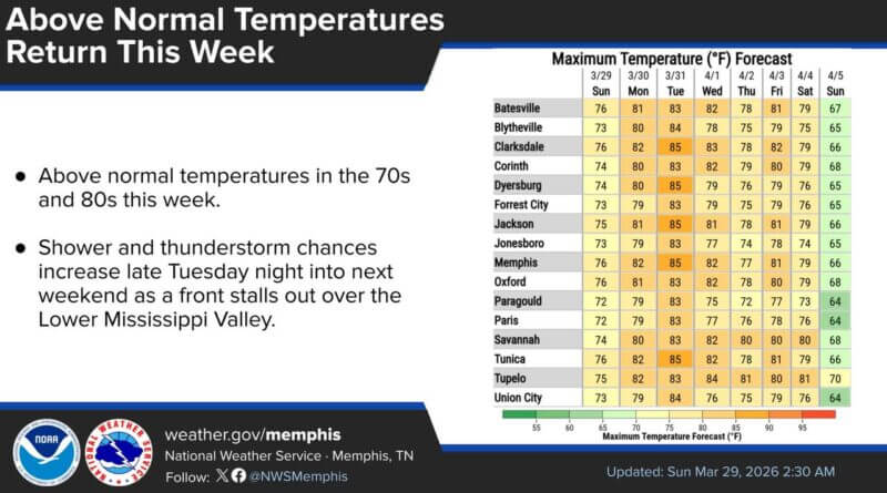 Temperatures Rise, Rain Likely in Memphis Area This Week