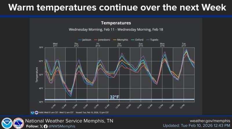 Temperatures are expected to remain warm across the Midsouth through the coming days, according to weather officials.