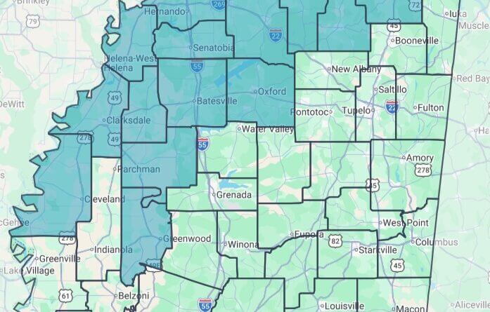 As of 8 a.m. Saturday, reports indicate ice on roads and bridges in 14 Mississippi counties. The affected counties are Alcorn, Benton, Bolivar, Coahoma, DeSoto, Lafayette, Leflore, Marshall, Panola, Quitman, Tallahatchie, Tate, Tippah and Tunica.