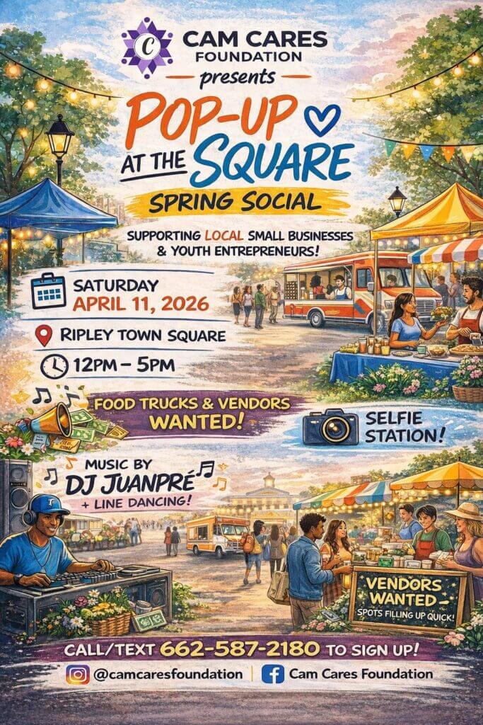 RIPLEY, Miss. — The Cam Cares Foundation is inviting the community to gather in downtown Ripley next month for a family-friendly event aimed at supporting local businesses and youth entrepreneurs.